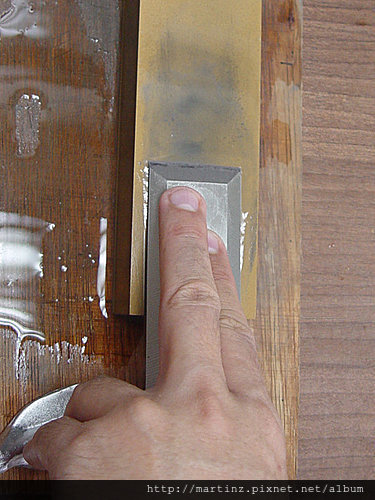 先將鑿刀的平面先研磨,除了經過粗磨刀石,還要經過細磨刀時。