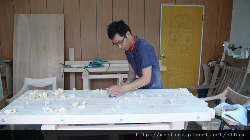 工作桌在製作的過程中,會學到各式的方榫,大進小出榫、單方榫、雙方榫、搭接榫,包括拼接桌面,到最後要整平才是最大的工程,這是完工前最後的里程碑,紀念一下。