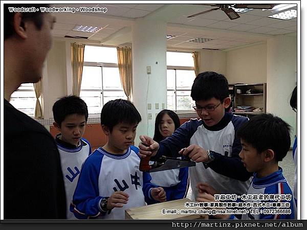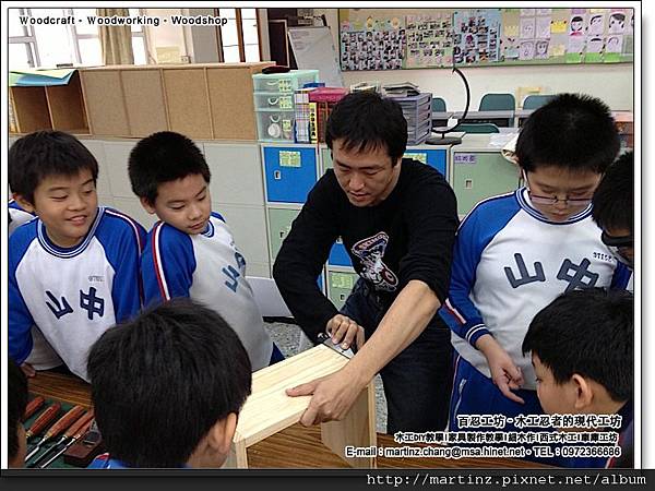 很感謝彰化中山國小資優班的楊念倫老師給我這一次的機會,跟小朋友一起玩木工