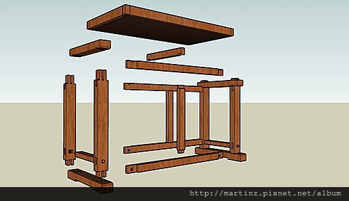 哈莉貓老師的工作桌,使用到很多種榫方榫、雙方榫、大進小出榫,主要是方榫系列的榫,但是慢慢玩味其結構,才發現其精巧的部份。