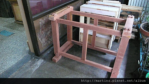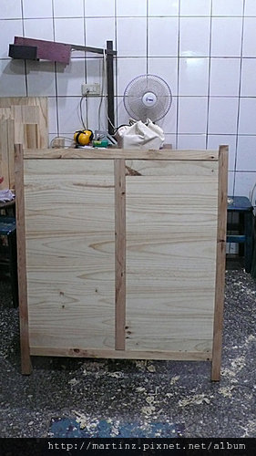 值得慶祝的一刻,螃蟹彰從將外面又髒又舊的棧板料,刨面拼板終於將拼板鑲於框體上,四周圍用它的西式刨刀細心修整,終於完成第一個櫃面。