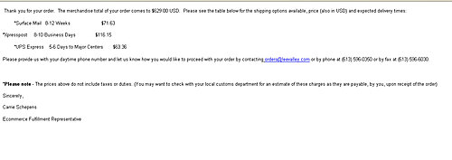先註冊帳號,將所購買的東西放入購物車,線上刷卡,會有確認信,再來一封運輸選擇信,通常建議ups