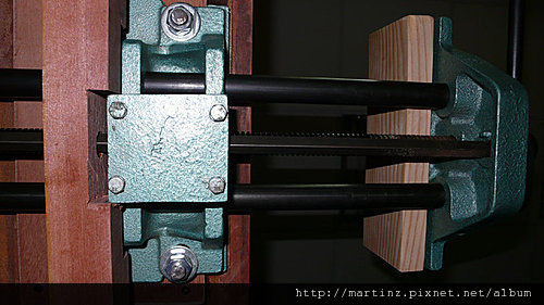 裝上護木的工作夾,這隻工作夾扣除護木與桌面的工作寬度長達32cm,這樣安裝起來就會變成做木工的好幫手。