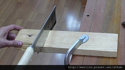 配上工作夾的護木,從剩下的松木鋸下可以長過工作夾的木塊。