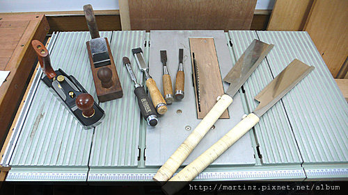 傳統的細木作之外,西式木工,是一個彈性比較高,應用工具比較彈性的課程,外國人在自家車庫裏就可以玩木工,比較常用到現代的電動工具,電動工具會讓人覺得很難控制,最主要的原因,他們都有馬達,會快速的轉動,所以課程中很重要的是設計治具,透過治具的幫忙,你可以將這些電動工具固定起來,讓他依照你的意思來工作,另外的部份是,用西式鑿刀,鋼鑿在五金店內都容易買到,要外銷的零碼尺寸,比較大的鋼鑿,小的鋼鑿要從國外訂購,還有鋼刨,實際上鋼刨是木刨的改良,除了推刨刀的控制是用旋控推刀,最主要的好處是鋼刨的刨膛呈現完美的90度,可以透過鋼刨來整平毛料,當然也是國外買,最後額外要買的是磨刀器(外購),電動工具的部份,雕刻機,桌上型圓鋸機,砂帶機,電鑽,這些B&Q或電動工具店都可以輕易購得,但是當然可能的投資要破萬元,但是最大的好處是只要這些工具你的陽台木工坊就可以開張,但是還是有些許的噪音還有粉塵,所以木工忍者才會躲在廁所玩木工,主要是操作電動工具的部份,然後其他的部份就可以手工慢慢玩。