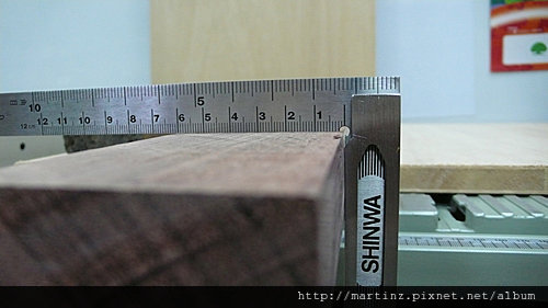 先用鋼刨取出一面為平面,用來靠在Table Saw上面,因為這批料有再製材廠出刨過,有明險的刨痕,所以才沒再取第二平面,就是靠在依板上的這個面,若是要更精準是要準備兩面,一面是在Table Saw的靠面,一面是呈90度貼在依板上的這一面。