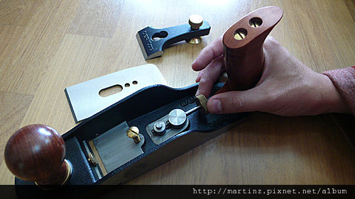 兩家刨刀在Lie-nielsen的做工上比較精美,鋼材也用的比較厚,售價比較高,刀片也比較厚,所以一切都很完美,只是在推刀的控製機購上,是用螺絲上下旋轉,經由90度的角鋼推刀,但是鎖定钮鎖定在刀片的溝槽上,當刨刀在推刀用力時可能會有移動的現像。