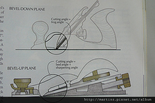 傳統的刨刀是採用 Bevel-Down Plane 刨刀的斜面朝下,傳統的木刨也是採用這樣的設計。