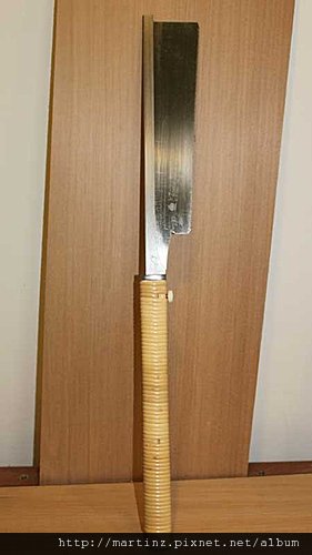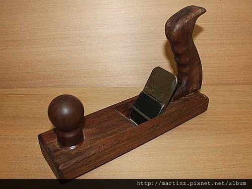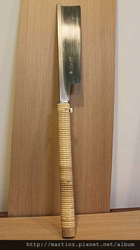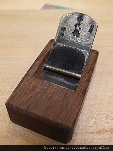 兩寸半的刨刀,對初學者來講還是吃力。(由於我已經改過刨刀,也沒有正常的刨刀可以拍,但是買到的刨刀是沒有木把手的,跟小刨的造形一樣)