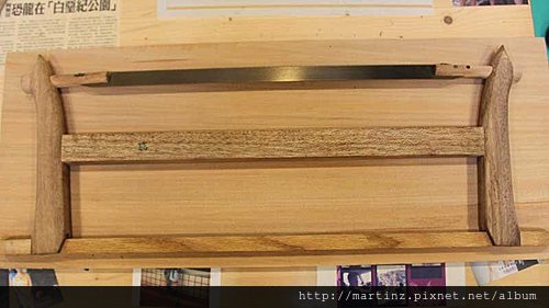 當然鋸子很利,因為夾背鋸只有鋸背上的鐵條夾持,所以很容易因為放置而變形,所以要用木頭做個鋸套,將鋸子保護起來。