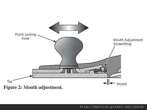 西式刨刀除了推刀是用螺桿控制非常精確外,另一個地方就是前半截的刨膛是可以活動的,透過這個方式可以控制刨刀的開口寬度。