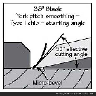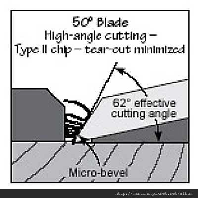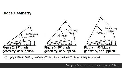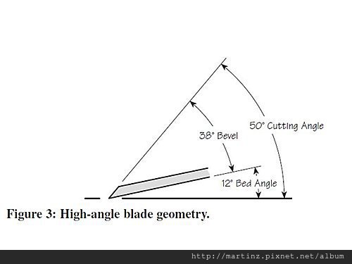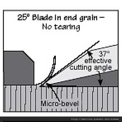 刨刀所呈現的角度,通常必須加上刨膛的角度,25度的刀加上12度會是37度,38度刀片加12度是50度,50度刀片加12度是62度。