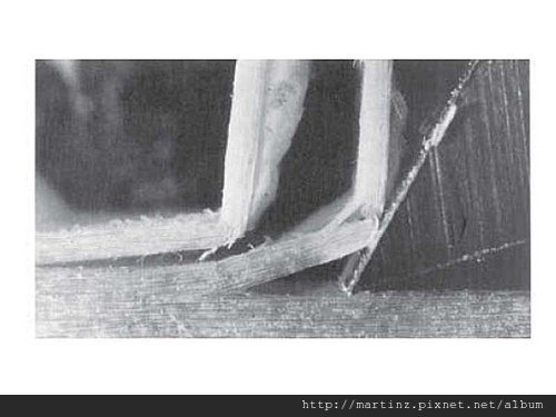 西式刨刀的前段刨膛是可以調整前後位置,他們特別將刨刀切開,然後研究刨刀下方開口對木料的影響。