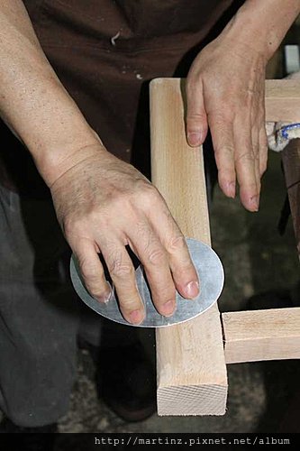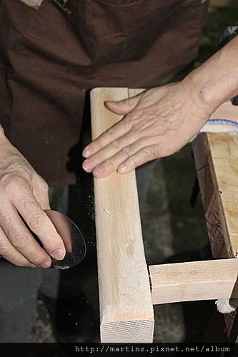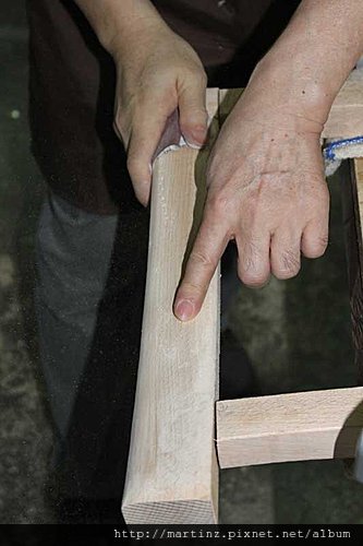若是表面還看得到砂輪機的紗痕,要用100號左右的砂紙,從新將木料整理過,再一路換更細的砂紙,然後用刮板處理表面。