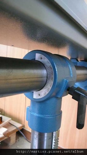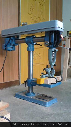 旋臂式的鑽床好處是彈性超大,你想打認何角度,都可以直接調整,轉向你要的角度來鑽孔,若是不行台面也可以調整,還有旋臂可推拉旋轉,雖然是桌上型,也可以轉到側面當落地型鑽床來用。