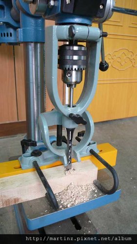 為了讓鑽床有複合功能,勦鑿組也特別準備,讓這台鑽床一機抵兩機。