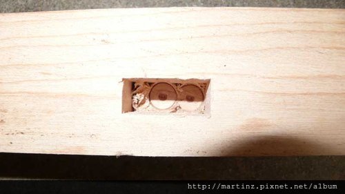 勦鑿組附送四隻勦鑿頭,下面是榫孔挖出來的特寫。