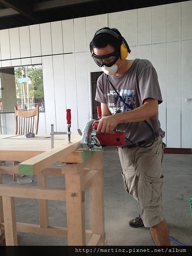 <div align="center"><br><br><br>木工DIY教學 工作桌切邊<br>工作桌的邊緣,很厚又不齊,可行的辦法是直接用手提圓鋸機來切邊,首先要將一塊平整的木料當導板,前後用F夾固定,再讓圓鋸機上場切邊,護具要帶好,然後再用圓鋸機直接切割,最重要的是圓鋸機的電線不能被切到,電線的位置一定要注意,若是無法一次切完成,可以用培林修邊刀讓上方平面當培林的靠面,再將下方的延伸部分修齊。<br><br><img id='ll_0' src='http://pic.pimg.tw/martinz/1354715659-1783424743.jpg?v=1354715660' /><br><br><img id='ll_1' src='http://pic.pimg.tw/martinz/1354715660-3399066104.jpg' /><br></div> <!--social sharing start--> <style> .msgcontent .wsharing ul li { text-indent: 0; } </style> <div class="wsharing bottom" onmouseover="getElementsByTagName('div')[1].style.display = 'block';" onmouseout="getElementsByTagName('div')[1].style.display = 'none';"> <div class="hd"> <h5 title="分享出去" id="univshar-btn">分享</h5> <span class="shortcut"> <a target="_blank" title="分享到 Facebook" href="http://tw.rd.yahoo.com/referurl/twblog/shareout/article/facebook/SIG=16hhnrgq2/*http%3A//www.facebook.com/sharer.php?u=http%3A%2F%2Ftw.rd.yahoo.com%2Freferurl%2Ftwblog%2Fclickback%2Farticle%2Ffb%2F%2Ahttp%3A%2F%2Ftw.myblog.yahoo.com%2Fjw%219XG6oOafEQUKMJ9ziP.kV1O8%2Farticle%3Fmid%3D4832" class="fb">Facebook</a> <a target="_blank" title="分享到 Plurk" href="http://tw.rd.yahoo.com/referurl/twblog/shareout/article/plurk/SIG=1bmaqf4jb/*http%3A//www.plurk.com/?qualifier=shares&status=http%3A%2F%2Ftw.rd.yahoo.com%2Freferurl%2Ftwblog%2Fclickback%2Farticle%2Fplurk%2F%2Ahttp%3A%2F%2Ftw.myblog.yahoo.com%2Fjw%219XG6oOafEQUKMJ9ziP.kV1O8%2Farticle%3Fmid%3D4832+%28%E5%B7%A5%E4%BD%9C%E6%A1%8C%E5%88%87%E9%82%8A+-+%E6%9C%A8%E5%B7%A5%E5%BF%8D%E8%80%85%E7%9A%84Yahoo%21%E5%A5%87%E6%91%A9%E9%83%A8%E8%90%BD%E6%A0%BC%29" class="plurk">Plurk</a> <a title="分享到 Yahoo! Messenger" href="ymsgr:customstatus?工作桌切邊 - 木工忍者的Yahoo!奇摩部落格+http%253A%252F%252Ftw.rd.yahoo.com%252Freferurl%252Ftwblog%252Fclickback%252Farticle%252Fymsg%252F%252Ahttp%253A%252F%252Ftw.myblog.yahoo.com%252Fjw%25219XG6oOafEQUKMJ9ziP.kV1O8%252Farticle%253Fmid%253D4832" class="yim">YAHOO!</a> </span> <span class="endrc"></span> </div> <div class="bd"> <ul> <li class="fb"><a target="_blank" title="分享到 Facebook" href="http://tw.rd.yahoo.com/referurl/twblog/shareout/article/facebook/SIG=16hhnrgq2/*http%3A//www.facebook.com/sharer.php?u=http%3A%2F%2Ftw.rd.yahoo.com%2Freferurl%2Ftwblog%2Fclickback%2Farticle%2Ffb%2F%2Ahttp%3A%2F%2Ftw.myblog.yahoo.com%2Fjw%219XG6oOafEQUKMJ9ziP.kV1O8%2Farticle%3Fmid%3D4832">分享在我的 Facebook</a></li> <li class="plurk"><a target="_blank" title="分享到 Plurk" href="http://tw.rd.yahoo.com/referurl/twblog/shareout/article/plurk/SIG=1bmaqf4jb/*http%3A//www.plurk.com/?qualifier=shares&status=http%3A%2F%2Ftw.rd.yahoo.com%2Freferurl%2Ftwblog%2Fclickback%2Farticle%2Fplurk%2F%2Ahttp%3A%2F%2Ftw.myblog.yahoo.com%2Fjw%219XG6oOafEQUKMJ9ziP.kV1O8%2Farticle%3Fmid%3D4832+%28%E5%B7%A5%E4%BD%9C%E6%A1%8C%E5%88%87%E9%82%8A+-+%E6%9C%A8%E5%B7%A5%E5%BF%8D%E8%80%85%E7%9A%84Yahoo%21%E5%A5%87%E6%91%A9%E9%83%A8%E8%90%BD%E6%A0%BC%29">分享在我的 Plurk</a></li> <li class="yim"><a title="分享到 Yahoo! 即時通" href="ymsgr:customstatus?工作桌切邊 - 木工忍者的Yahoo!奇摩部落格+http%253A%252F%252Ftw.rd.yahoo.com%252Freferurl%252Ftwblog%252Fclickback%252Farticle%252Fymsg%252F%252Ahttp%253A%252F%252Ftw.myblog.yahoo.com%252Fjw%25219XG6oOafEQUKMJ9ziP.kV1O8%252Farticle%253Fmid%253D4832">分享在我的即時通</a></li> </ul> </div> <div class="ft"></div> </div> <!--Social sharing end-->