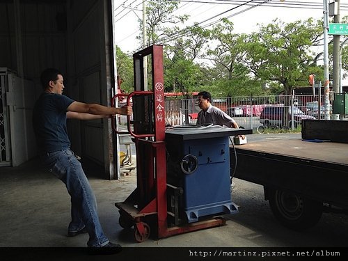 油壓起重機,需要小心操作,好處是搬重物輕鬆多了,由其是上下車。
