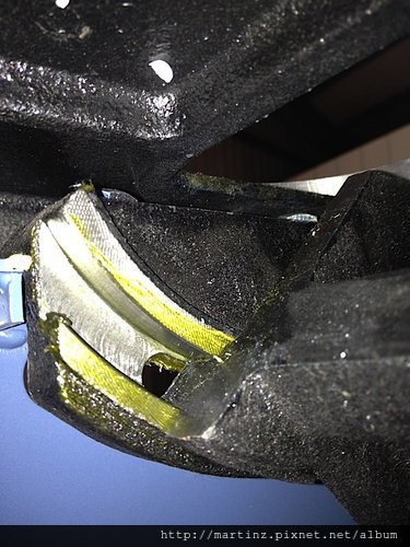 在圓鋸機的前後側會有弧形軌道,主要是讓馬達調整角度的懸吊軌道,噴掉木屑後,可以直接上牛油木屑雖然會粘住,但是潤滑效果會比較好。