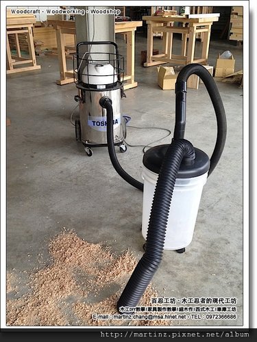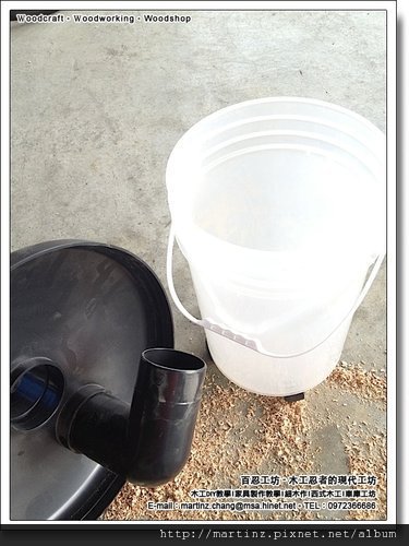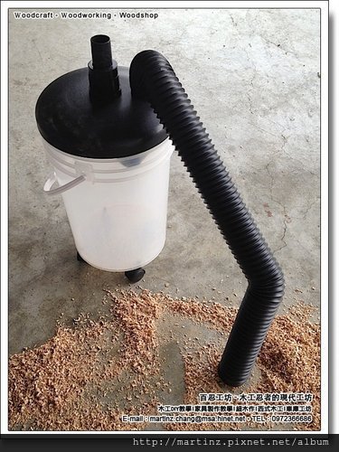 木工DIY的木友們,通常對木屑收集整理是一個大的問題,所以在吸塵器的使用時,木屑會很快的將濾袋的孔隙擋住,讓吸力下降,若是有木屑的集塵桶,木屑會先在集塵桶先降下來,吸力就不會減退,這真是個好方法,國內的廠商也開發出這樣的集塵桶,若是有需要的朋友可以私密留言。