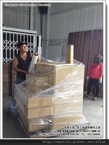 這次幫陳老師準備當代木工藝術研習所的裝備將會陸續送出,今天將運往台北包括圓鋸機,懸臂式鑽床,方榫治具,帶鋸機,勦鑿機也出貨往台北,今天有夠忙碌,後續還有其他裝備要快快送上。