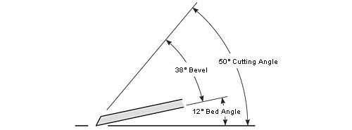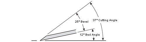 由於刀片的斜面朝上,可以直接透過刀片角度來轉變刨刀的角度,底角度25度,阻力較小對毛料初刨是比較好用的,若是遇到逆木紋,可以用小量的開口高角度50度刀片,所以可以一刀兩用。